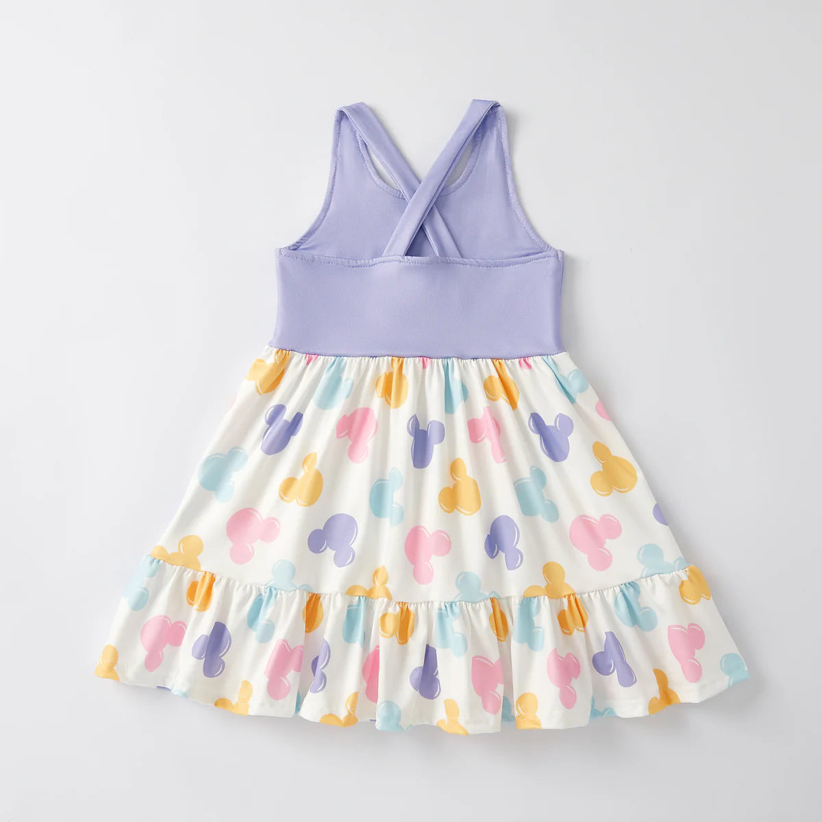 Get ready for spring and summer with this fun and playful dress featuring colorful cartoon characters! Made with a lightweight and comfortable fabric, this sleeveless dress is perfect for warm weather and is sure to make your little girl stand out. Available for pre-order now!